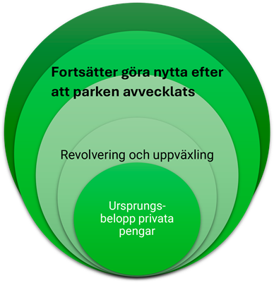Medvindslånet är ett topplån och beviljas som komplement till lån från andra finansiärer. Det innebär att pengarna växlas upp. Revolvering och uppväxling gör att pengarna växer och kan fortsätta göra nytta efter att en vindpark avvecklats.